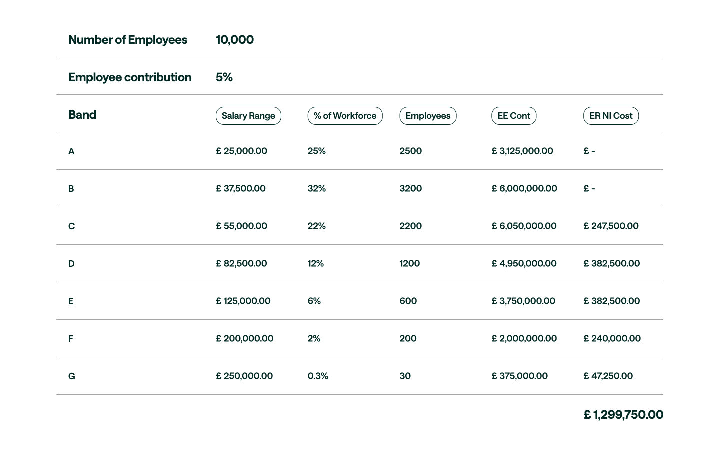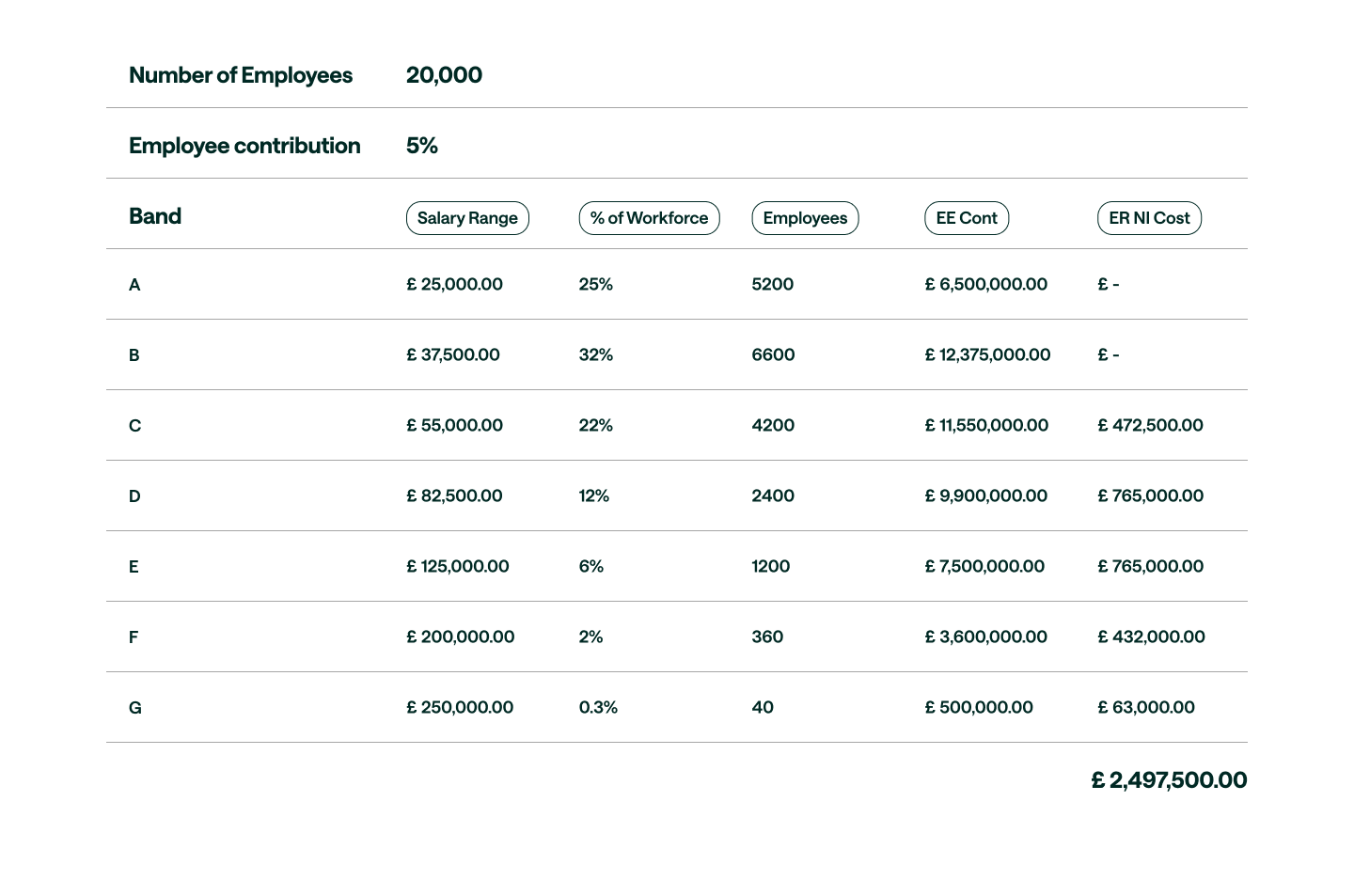 While the fiscal impact will vary by workforce profile, initial modelling shows the potential scale of employer NI costs once the cap takes effect.
